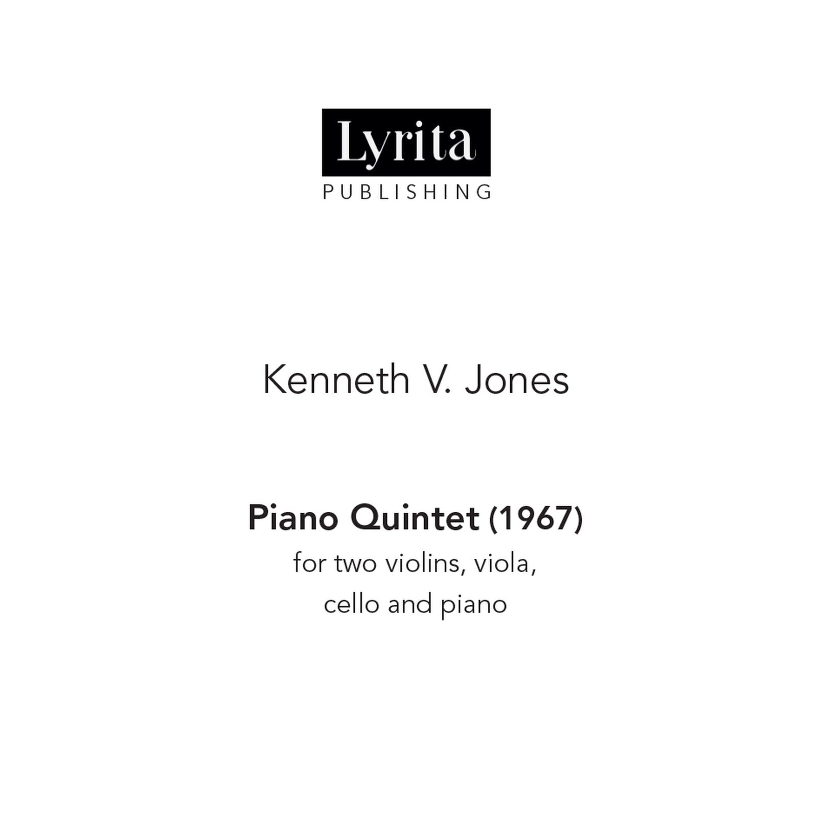 Among his many compositions, Kenneth V. Jones wrote a concerto for string orchestra (1956), a concerto for oboe and strings (1963), The Pollock, an orchestral prelude (1963), O Light Invisible, a cantata for soprano, mixed chorus and orchestra (1963), a sonata for solo violin (1967), Dialysis, for violin and harpsichord (1973), Quaquaverse, for saxophone quartet (1979), Paean for organ (1983), three Sinfonias for orchestra, as well as piano works, song cycles, film, play and television scores and church music, including hymns and anthems. The Quintet for Piano and String Quartet, Op.26 (1967) is a compact, finely balanced score in which the keyboard is in constant, purposeful dialogue with the strings and no single player is allowed to dominate the textures for too long. The resolute opening Allegro contains a couple of ear-catching passages where string phrases are repeated hypnotically, but for the most part, this is a vibrant, forthright movement, driven by the composer's characteristically punchy syncopated rhythms. The central Adagio brings a more expansive tempo, while maintaining an intensity of mood established by the opening movement. The outer sections are presided over by a tenacious, repeated note figure first heard on the viola at the outset, while the central episode is more diverse and adventurous in spirit. The vigorous, lilting Allegro finale revisits material from the previous movements and rounds off the piece in exuberant style.