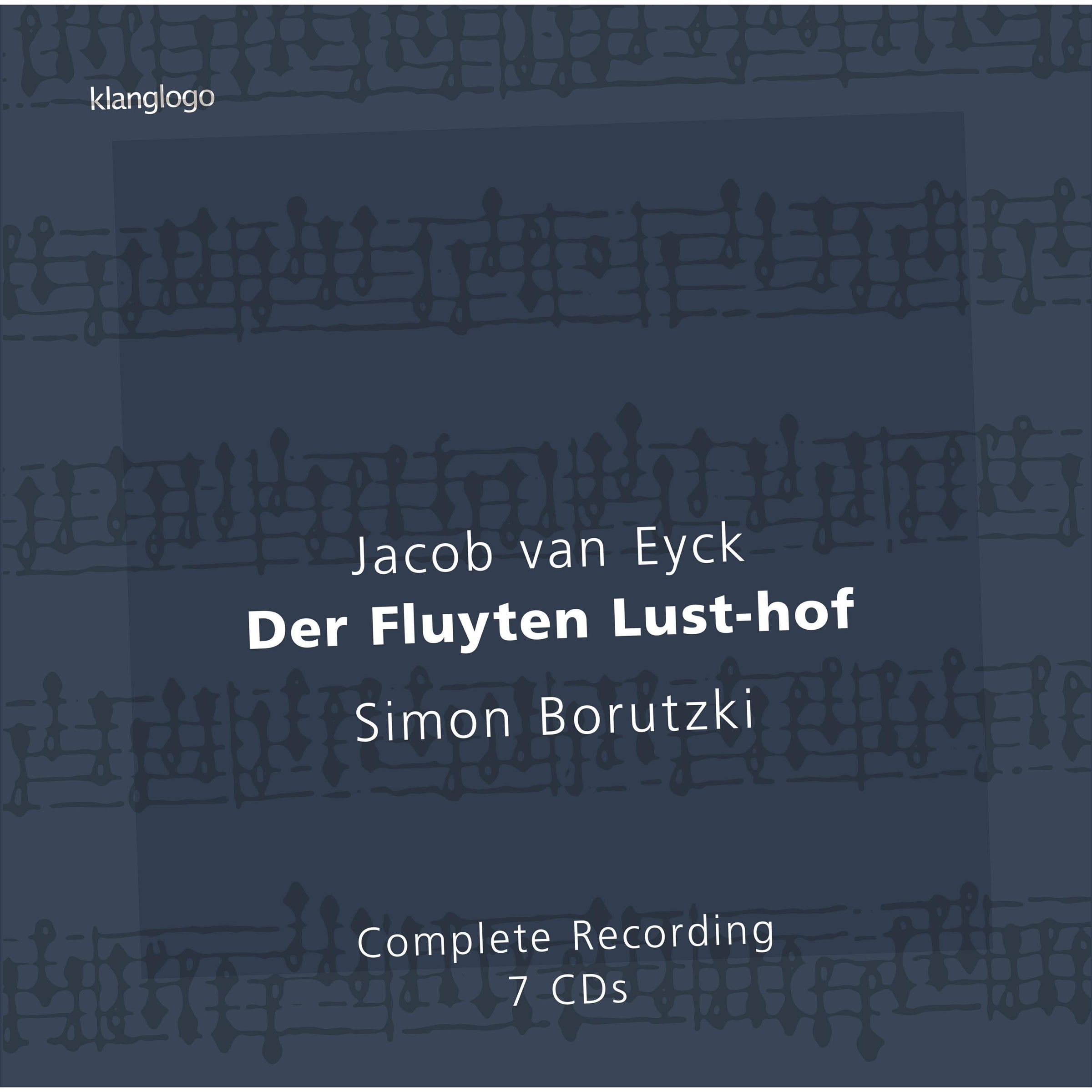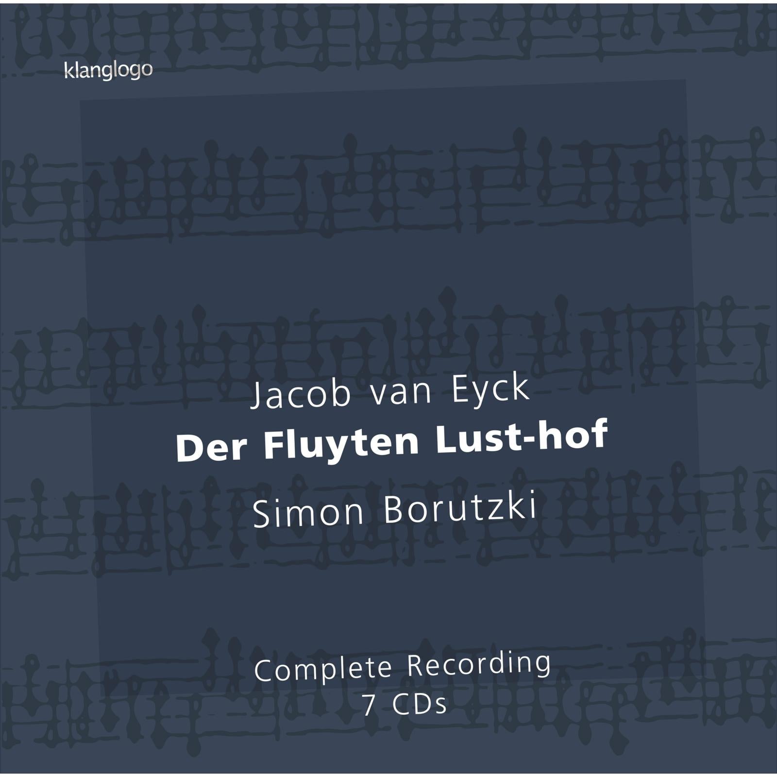 The Fluyten Lust-hof is the most extensive collection of pieces for a wind instrument ever created. During the period of transition from the Renaissance to the Baroque, the bell expert and recorder virtuoso, Jacob van Eyck, blind from birth, dictated his approximately 150 diminutions of well-known church and folk melodies in order that they could be published. With this monumental complete recording, Simon Borutzki, with 26 recorders, presents a multi-layered universe of sound: from the deep, rich voices of the low tenor recorders to the twinkling, effervescent virtuosity of the Sopranino. Evergreens such as 'Amarilli mia bella', 'Flow my tears' and 'Questa dolce sirena' are found alongside free preludes, an echo fantasy, the 'Batali' battle scene, and the chirruping English nightingale.